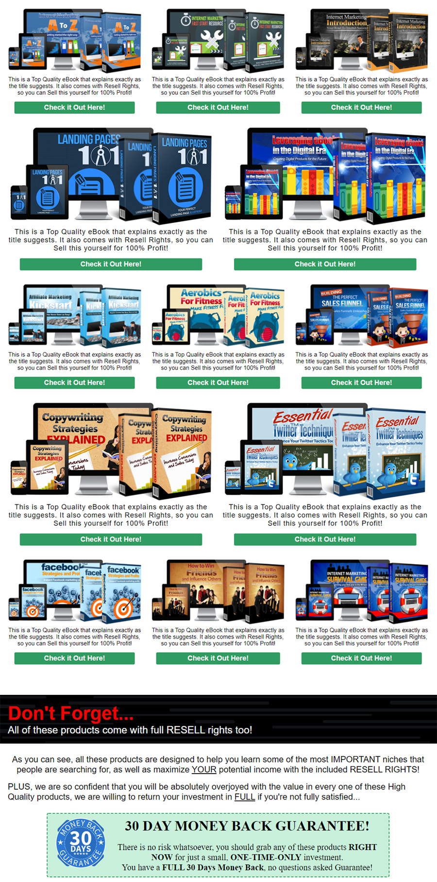 Each bundle is fully ready to rebrand, sell, or give away.  PROFESSIONALLY designed and market-tested, they allow you to start generating revenue immediately.